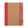 Quaderno rilegato a spirale con copertina rigida in cartone riciclato. Include una penna abbinata con inchiostro blu. 60 pagine.