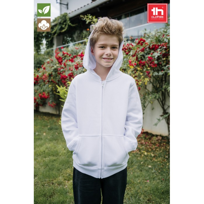 Felpa con zip per bambini con cappuccio – 320 g/m2 – Spugna americana: 50% cotone proveniente da pratiche di approvvigionamento sostenibili, 50% poliestere riciclato – Cappuccio senza coulisse e con fodera in jersey nel colore dell’articolo – Interno cardato – 2 tasche laterali – Chiusura inserita con cursore e tiretto – Polsini e fondo del capo in costina 1×1  – La cappa è conforme agli standard di sicurezza dell’Unione Europea – Trattamento enzimatico – Tagliato e cucito