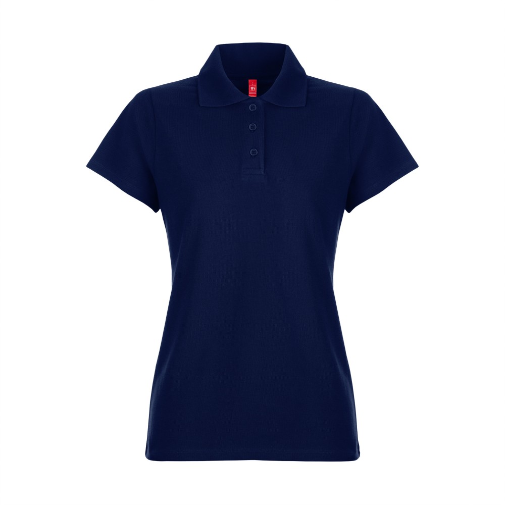 Polo da donna 195 g/m² – Piqué, 50% cotone 50% poliestere – Piqué, 50% cotone 50% poliestere – Colletto a costine 1×1- Nastro di rinforzo all’interno del colletto in piquet – Tagliato e cucito – Taglio regolare – Doppia cucitura sulle maniche e sul fondo del capo – Abbottonatura con 3 bottoni colorati – Prodotto in Portogallo – Dettaglio ricamato nella parte inferiore dell’indumento – Cintura