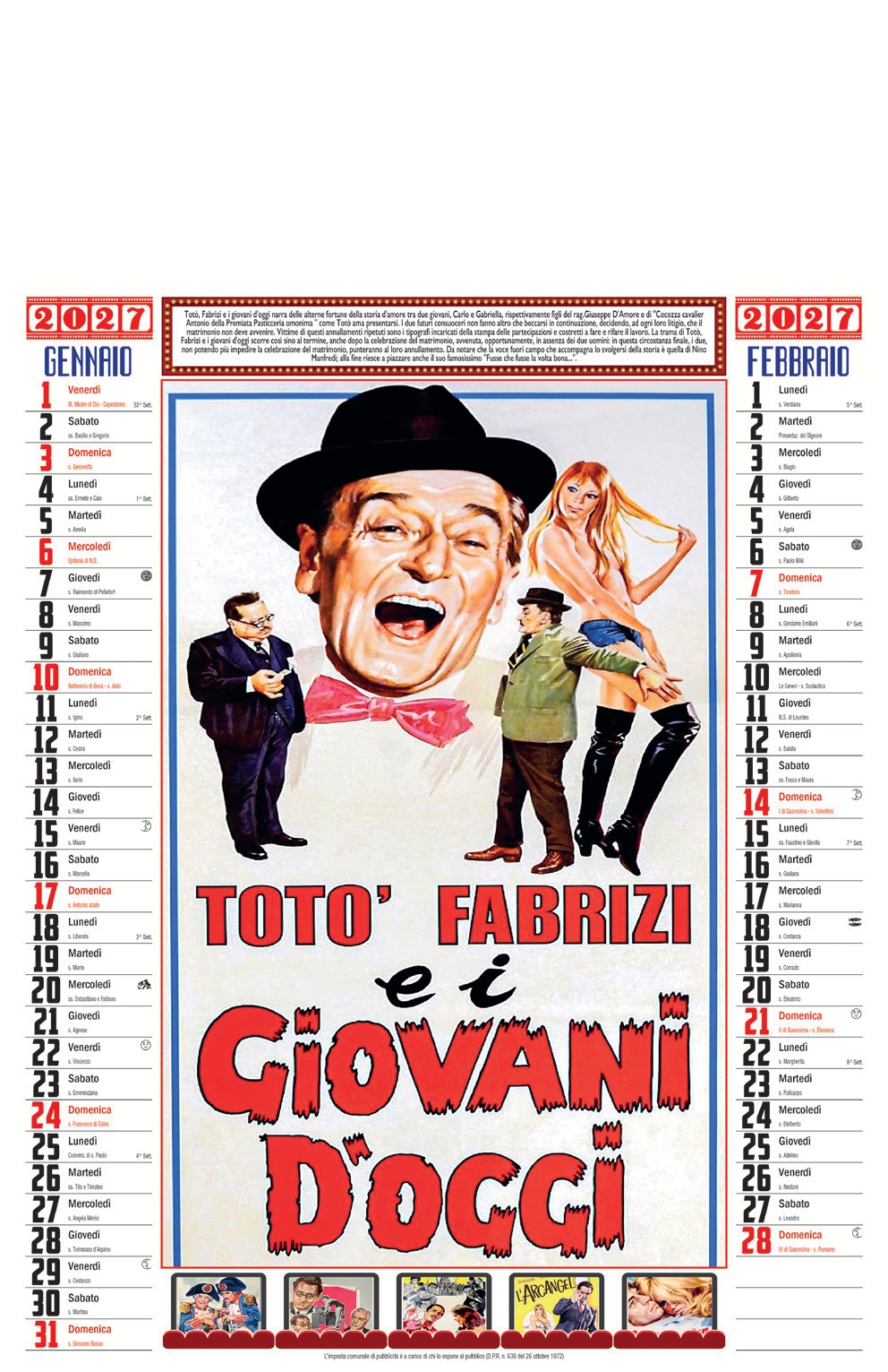 D001 – Calendario Illustrato Cinema 6 FF – Carta Patinata – Termosaldato – Imballo : 100pz – Misure : 32×49.5cm – Area Stampabile : 32x10cm
