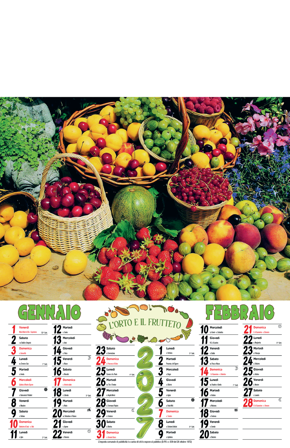 D011 – Calendario Illustrato L’orto e il Frutteto – 6 FF – Carta Patinata – Termosaldato – Imballo : 100pz – Misure : 32×49.5cm – Area Stampabile : 32x10cm