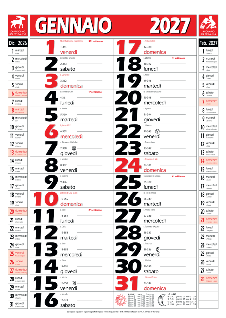 D022 – Calendario Olandese 12 FF – Carta Patinata – Termosaldato – Imballo : 100pz – Misure : 31x53cm – Area Stampabile :31x10cm