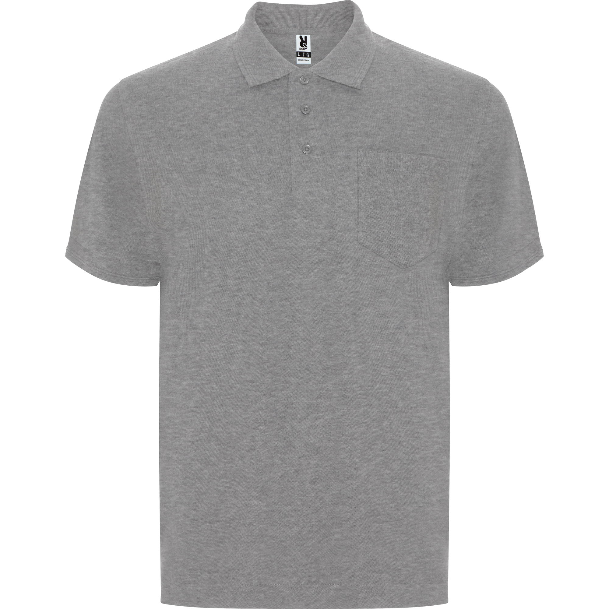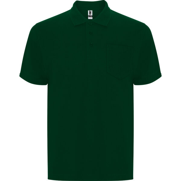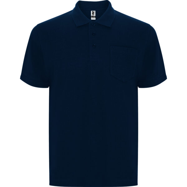 Polo manica corta con taschino lato cuore. Collo a costine 1×1 e bordo delle maniche con dettaglio in rilievo. 3 bottoni. Cuciture rinforzate sul colletto.