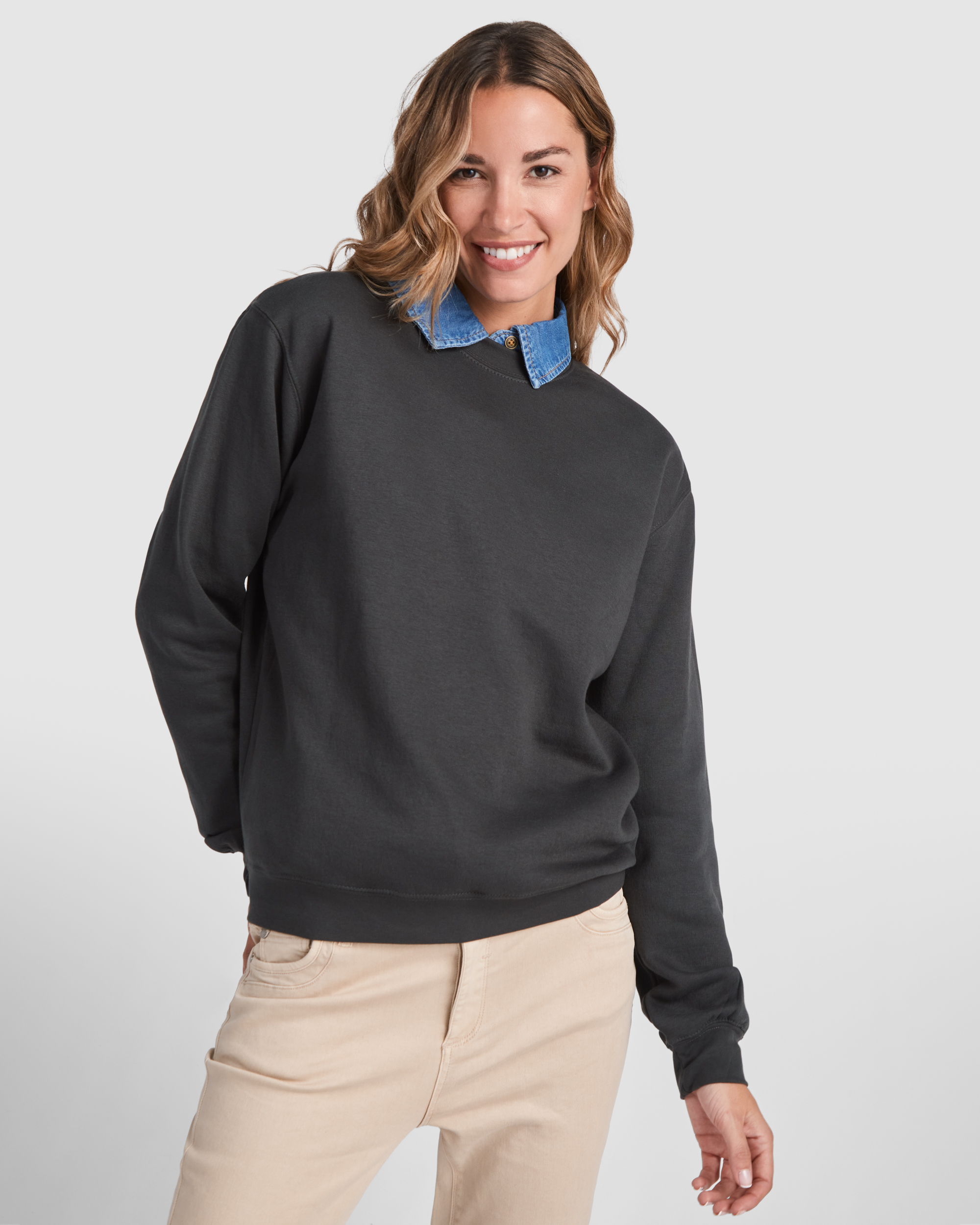 Felpa dal design classico, con colletto, polsini e fascia in vita in maglia a coste 1×1 con elastan. Copertura delle cuciture rinforzata sul colletto.