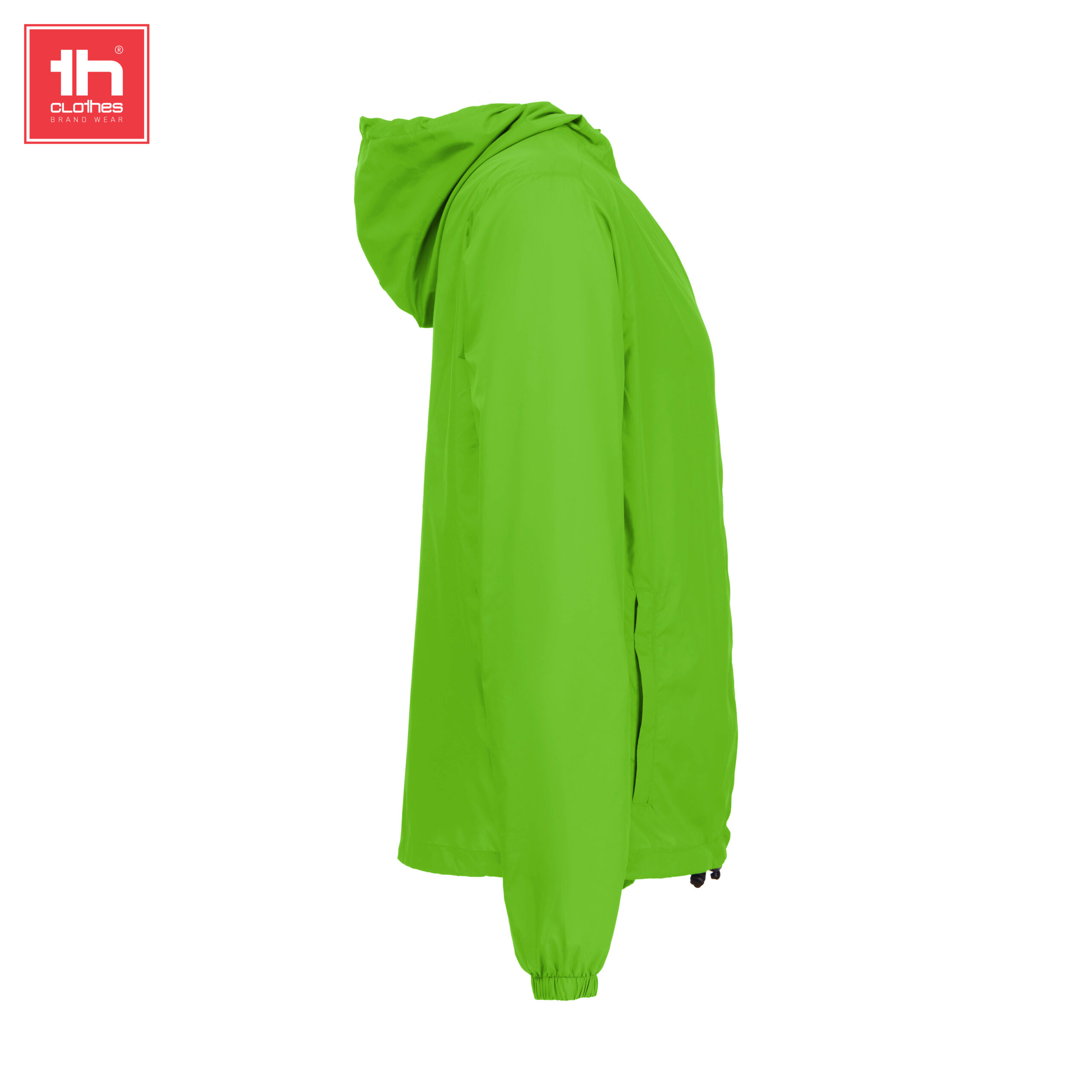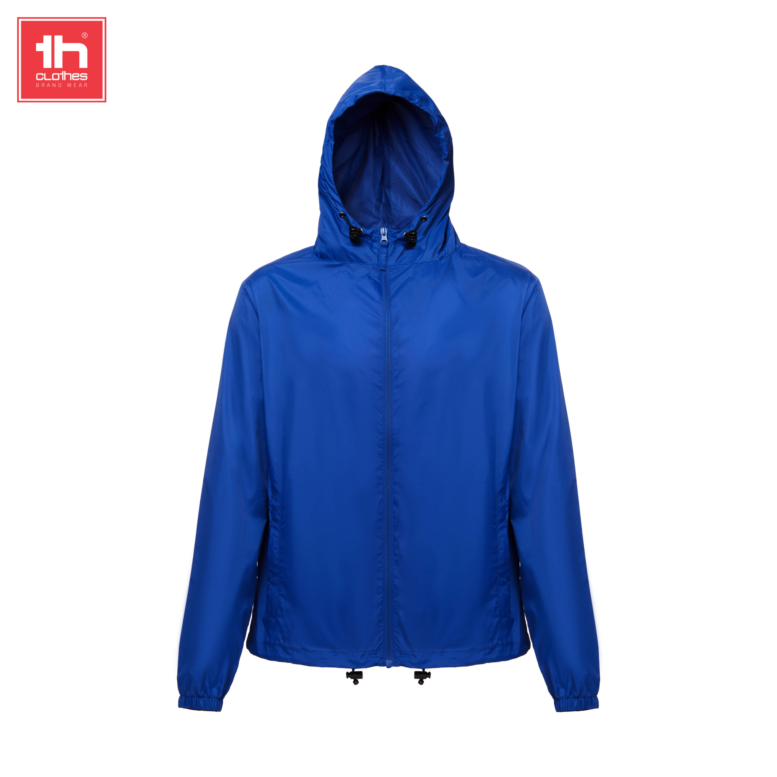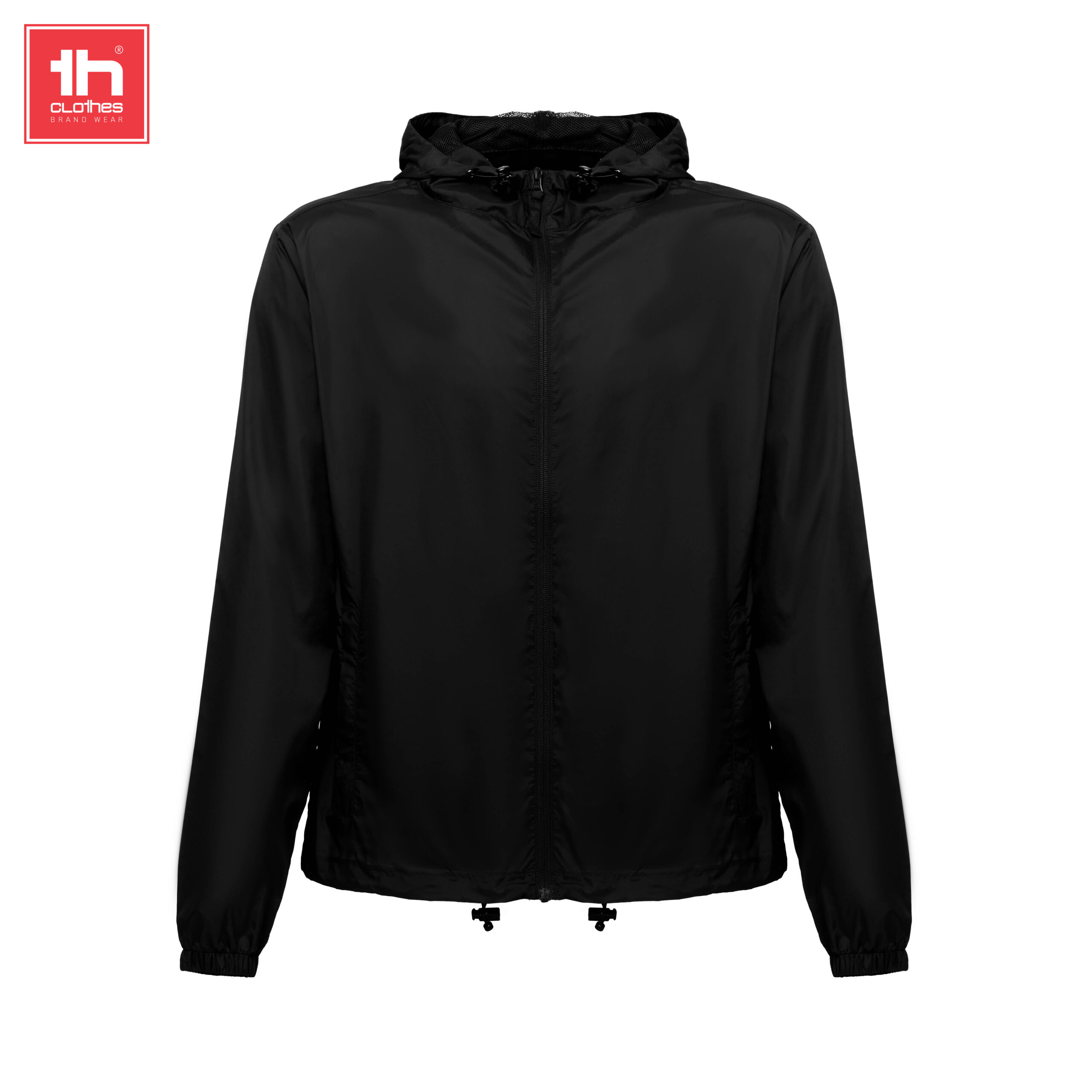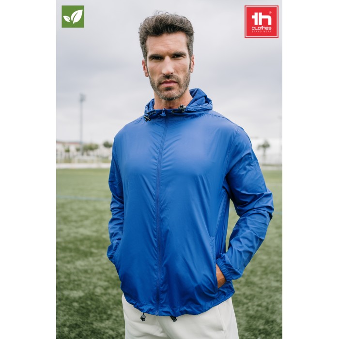 Giacca a vento unisex con cappuccio foderato in rete 65 g/m² · Taffetà, 100% poliammide riciclata · Cappuccio foderato in rete e coulisse · Tasche laterali con cerniera · Apertura frontale con cerniera YKK® · Elastico di serraggio con tappi sul fondo · Occhielli di ventilazione · Articolo impermeabile