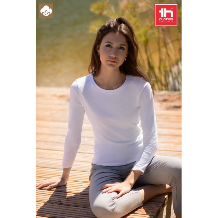 T-shirt da donna a maniche lunghe, 150 g/m² – Jersey, 100% cotone proveniente da pratiche agricole sostenibili. • Grigio sfumato: 90% cotone proveniente da pratiche agricole sostenibili, 10% viscosa – • Nastro di rinforzo in jersey all’interno del colletto • Doppie cuciture sulle maniche e sul fondo del capo • Tagliato e cucito · Cinghie • Trattamento enzimatico
