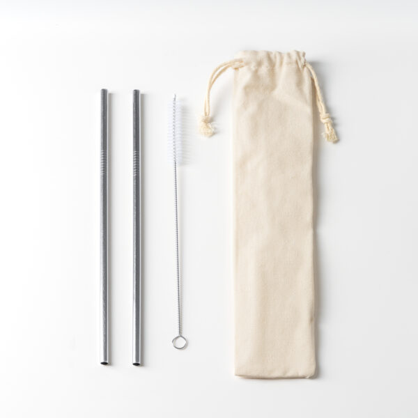 Set di 2 cannucce in acciaio inossidabile 304 con fodera in cotone. Include spazzola per la pulizia.
