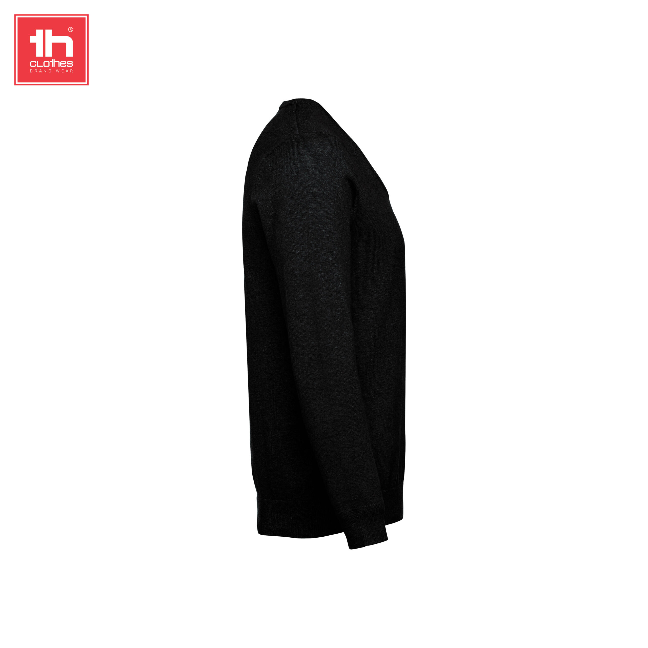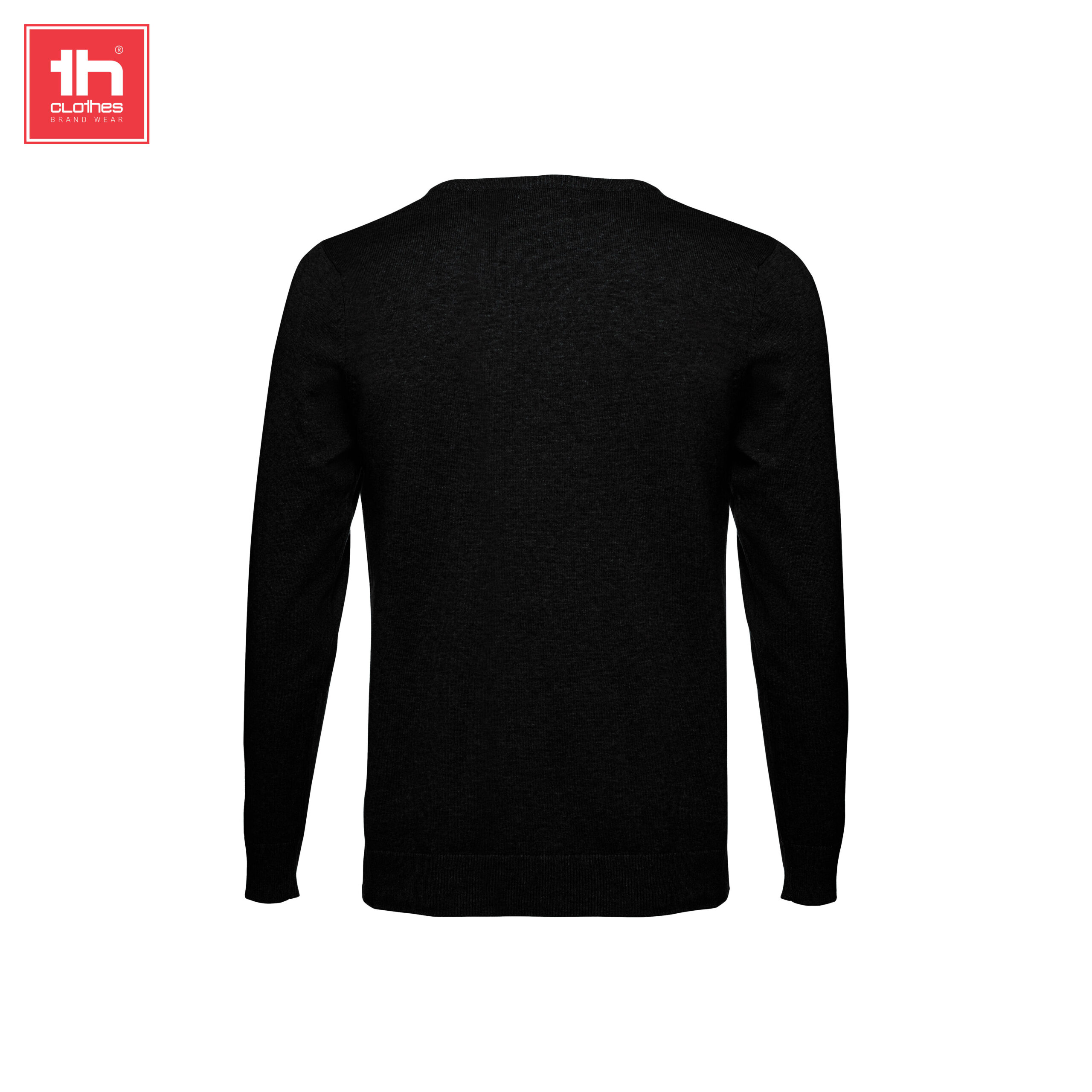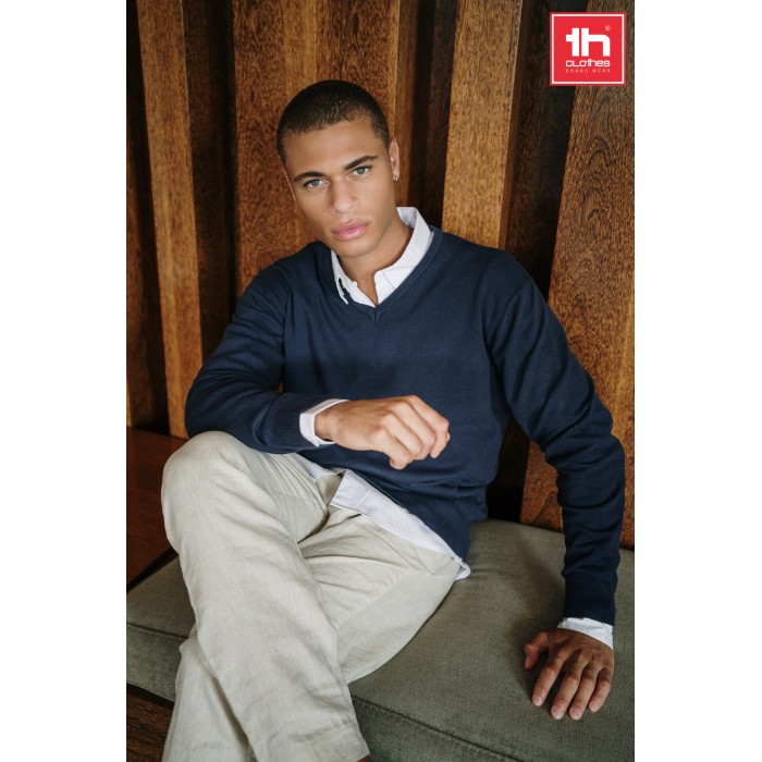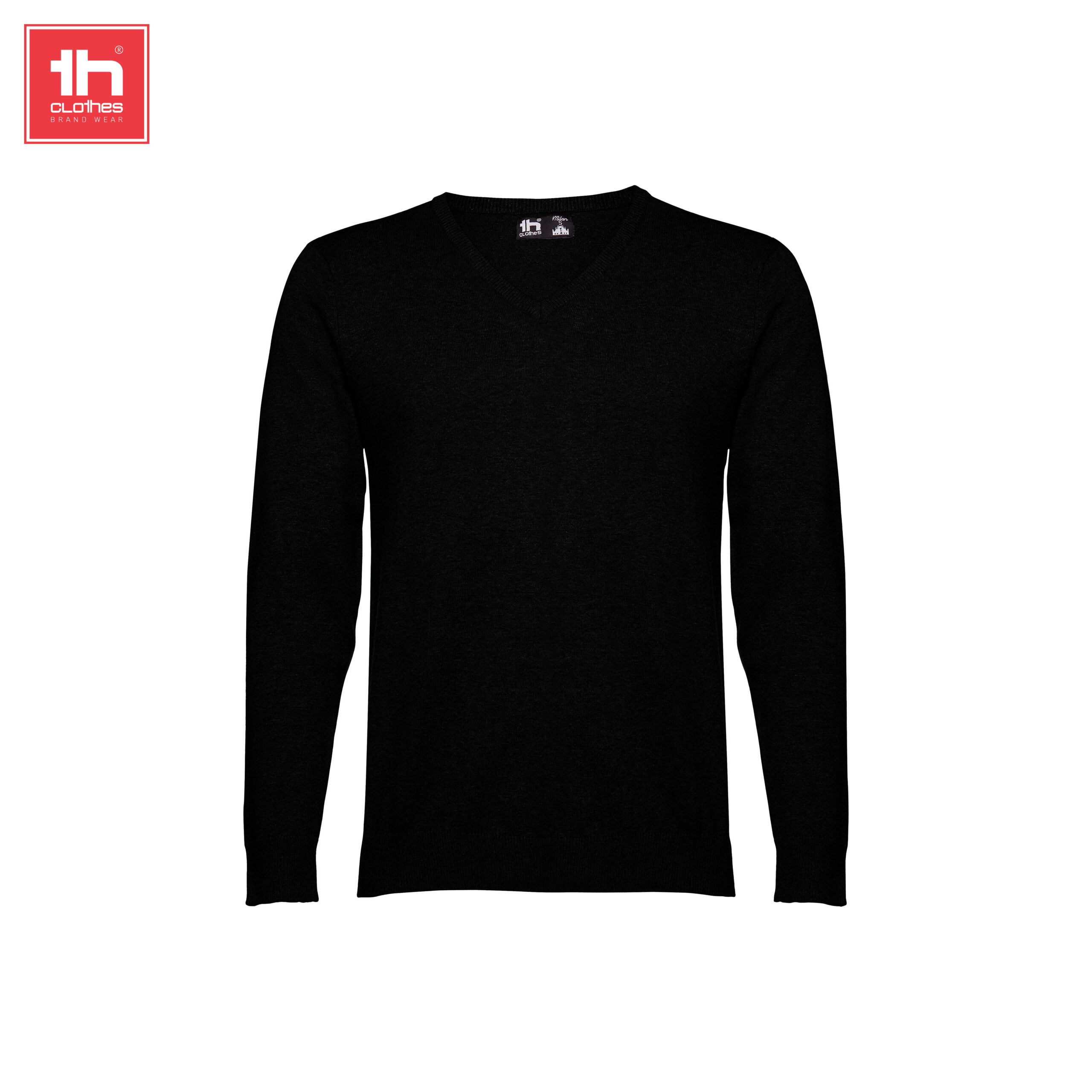 Maglione da uomo con scollo a V 220 g/m² – 70% cotone, 30% poliammide· Polsini, colletto e fondo a coste – Maniche inserite completamente alla moda · Scollo a “V”.