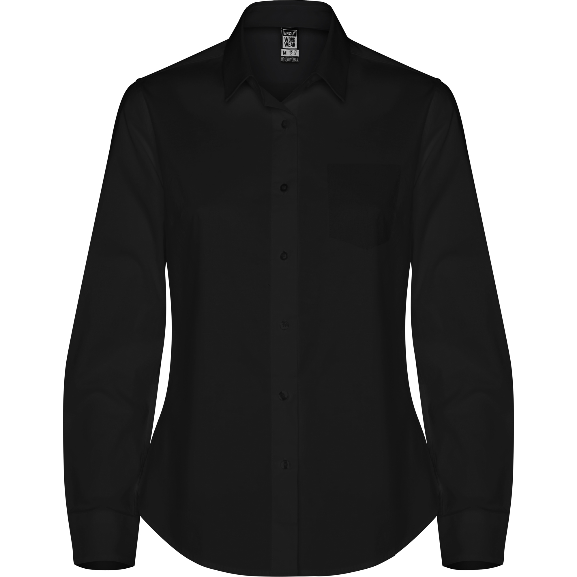Camicia da donna a maniche lunghe in tessuto elasticizzato.