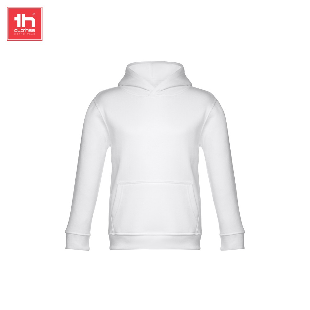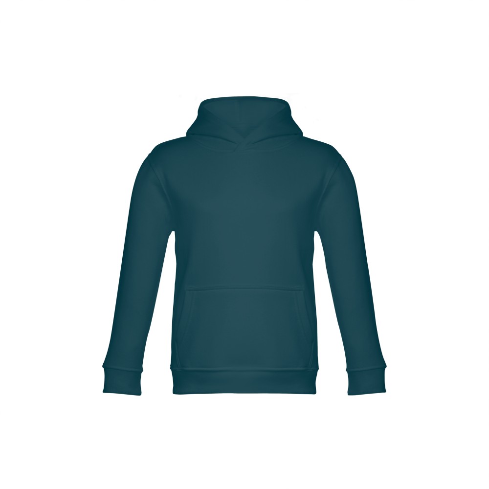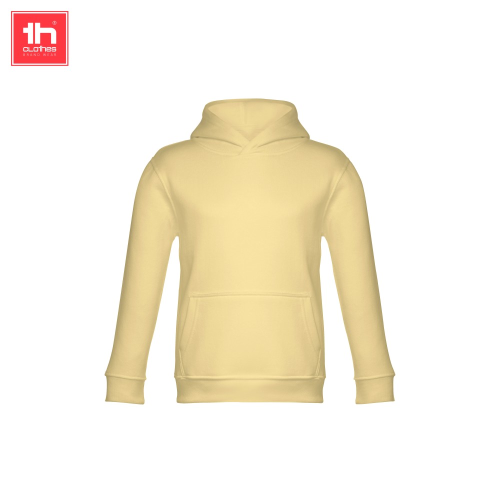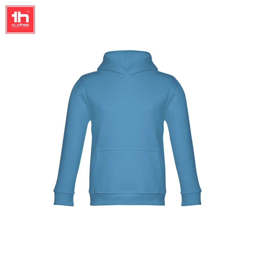 Felpa con cappuccio unisex per bambini 320 g/m² – 50% cotone, 50% poliestere – Interno cardato – Costina 1×1 sui polsini e sul fondo – Tasca marsupiale – Cappuccio foderato in jersey – Trattamento enzimatico – La cappa è conforme agli standard di sicurezza dell’Unione Europea