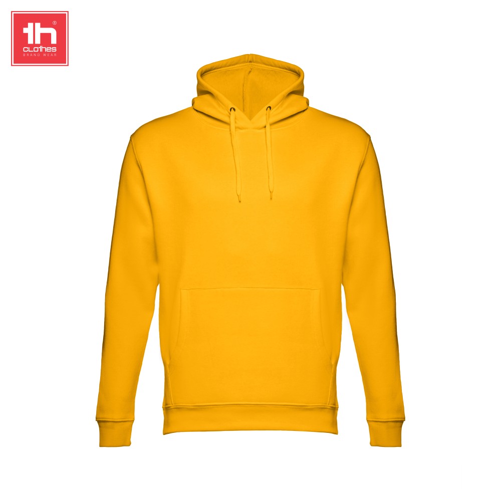 Felpa unisex con cappuccio 320 g/m² – 50% cotone, 50% poliestere – Interno cardato – Costina 1×1 sui polsi e sul fondo del capo – Tasca marsupiale – Cappuccio con occhielli metallici e coulisse in codice colore – Tagliato e cucito – Nastro di rinforzo all’interno del colletto – Trattamento enzimatico