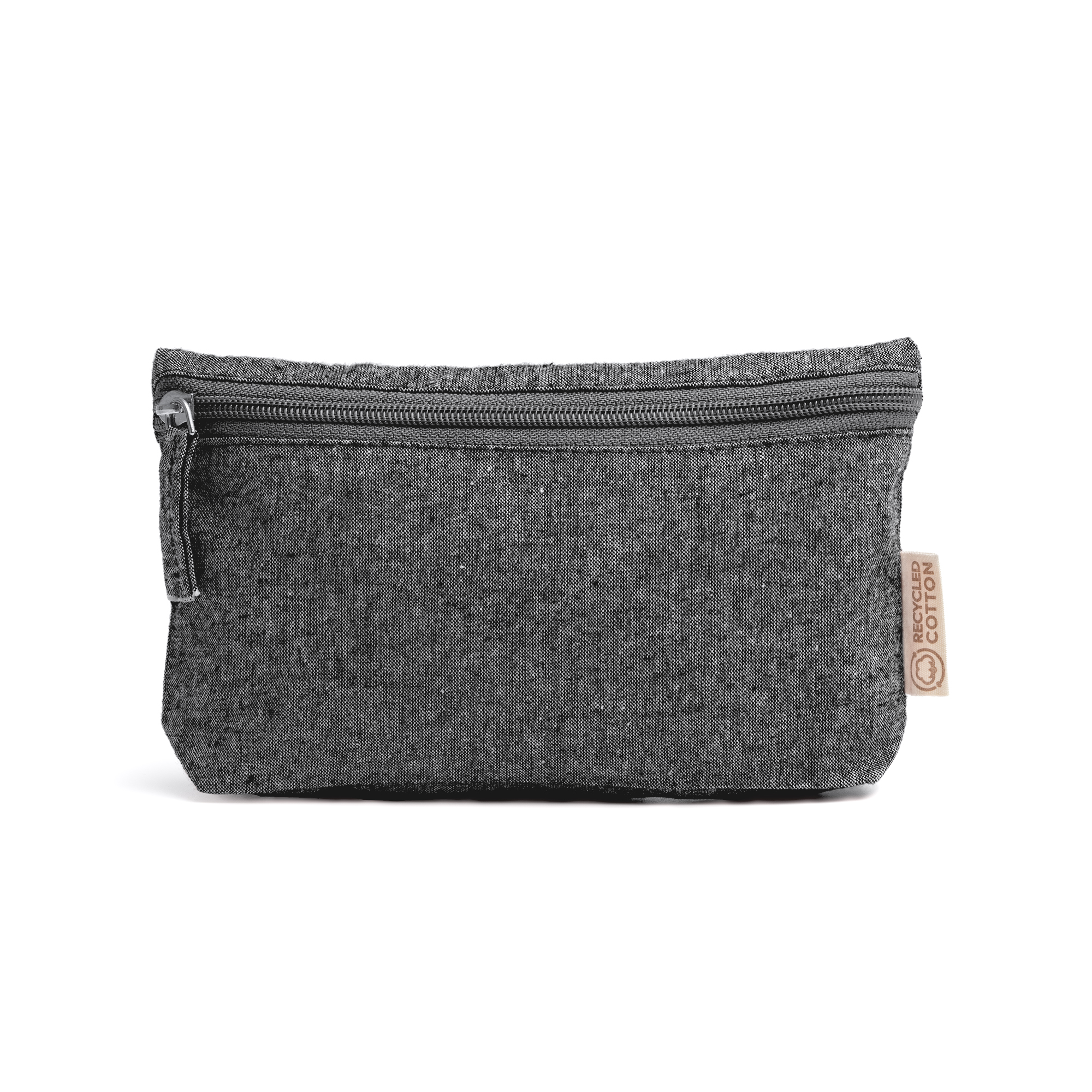 Beauty case multiuso in 100% cotone riciclato con cerniera e tiretto abbinati.