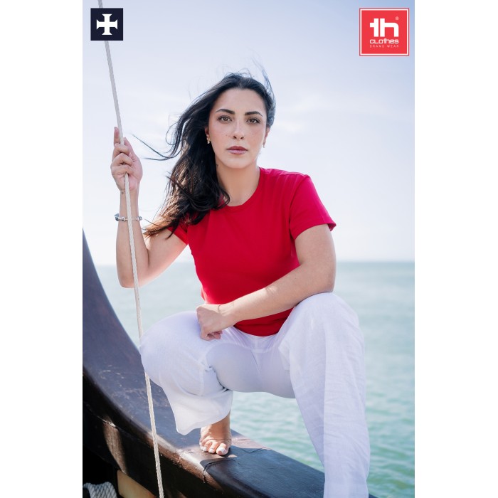 Maglietta unisex 150 g/m² – Jersey, 100% cotone – Colletto a coste 1×1 – Doppia cucitura sulle maniche e sul fondo del capo – Taglia e cuci – Taglio regolare – Nastro di rinforzo in jersey – Prodotto in Portogallo – Dettaglio ricamato nella parte inferiore dell’indumento