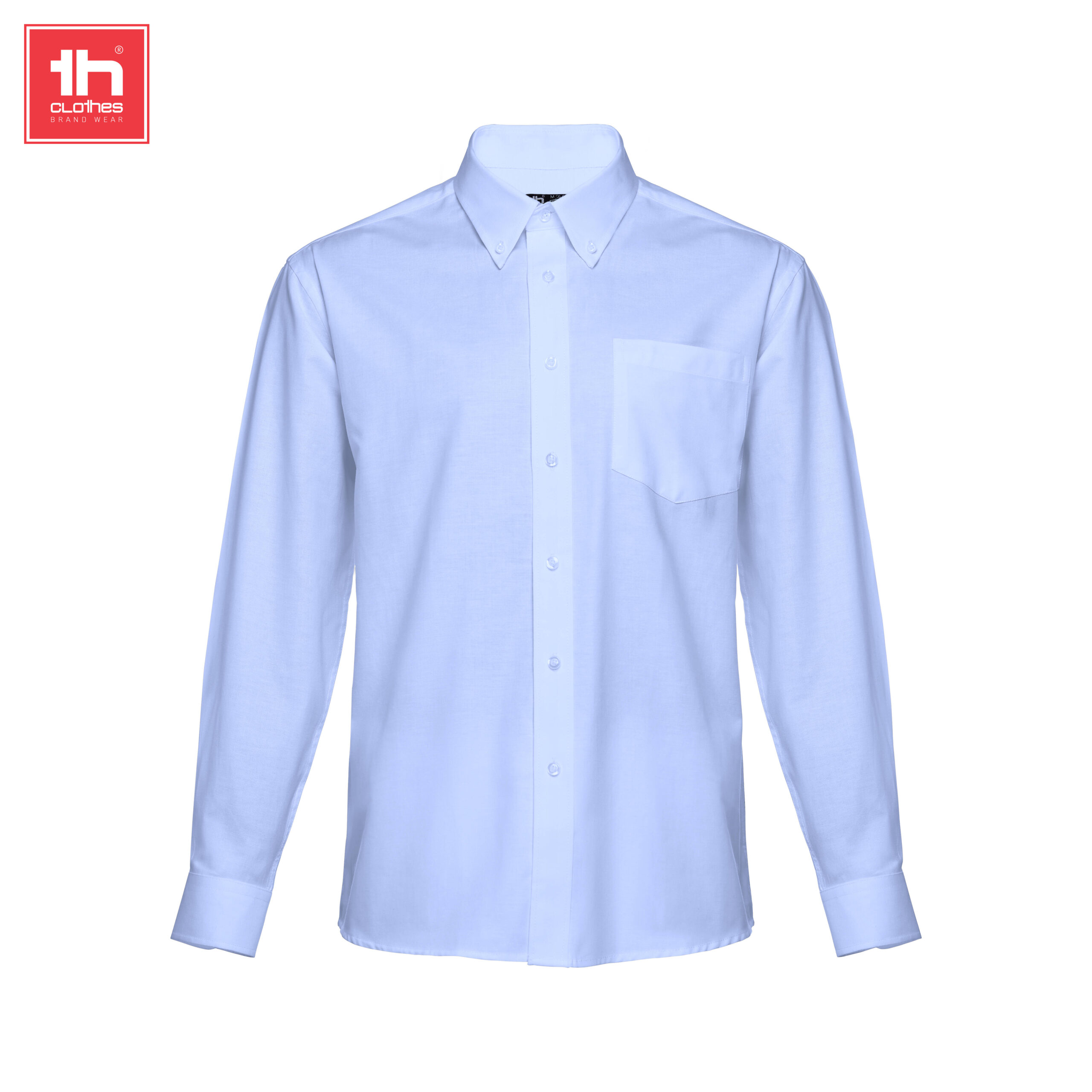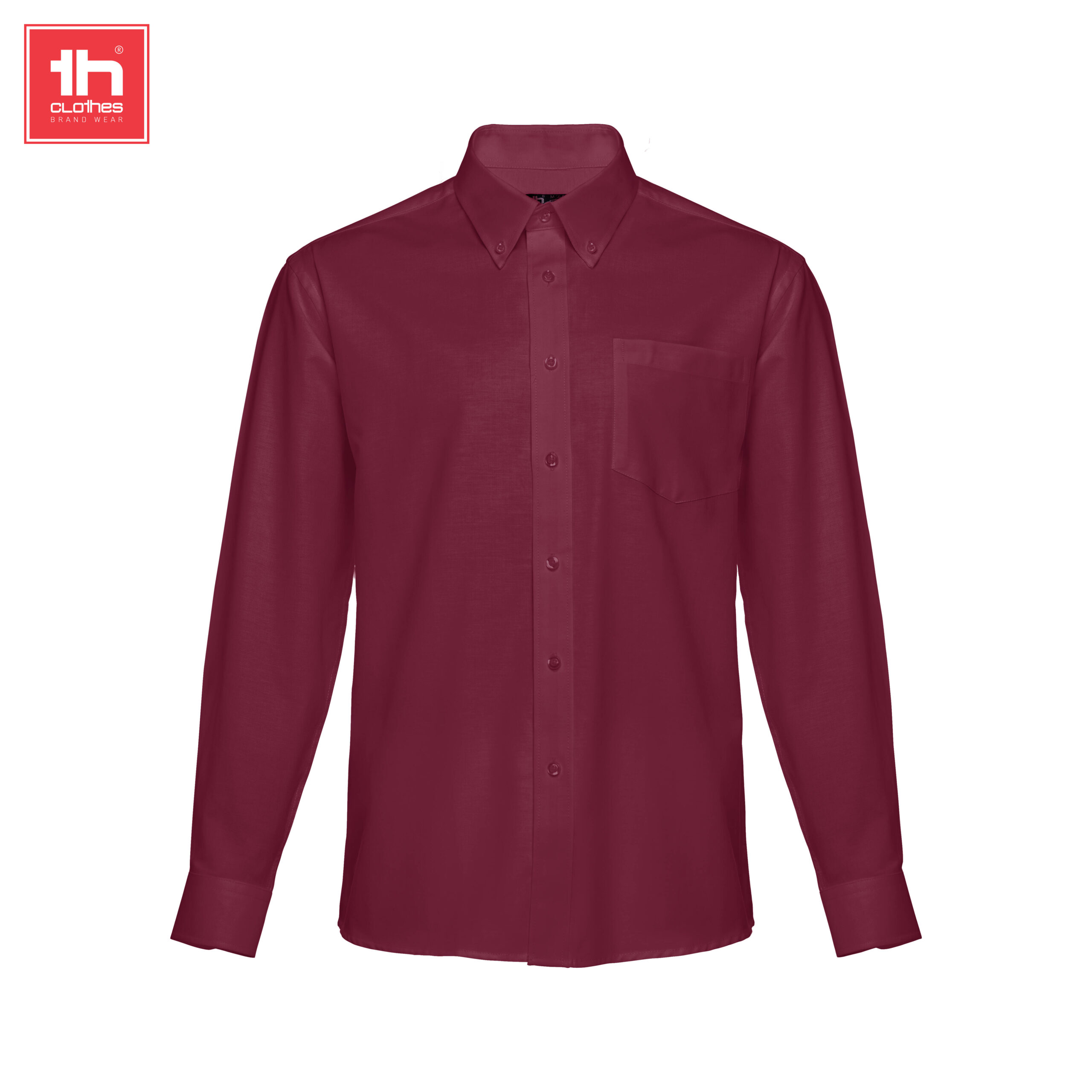Camicia oxford da uomo a manica lunga 130 g/m² – 70% cotone, 30% poliestere · Tasca nella zona del petto sul lato sinistro · 2 bottoni visibili per fissare il colletto · 1 bottone sul polsino · Abbottonatura con 7 bottoni color perla (escluso nero, grigio e bordeaux) · Manica lunga con 2 pieghe · Colletto classico