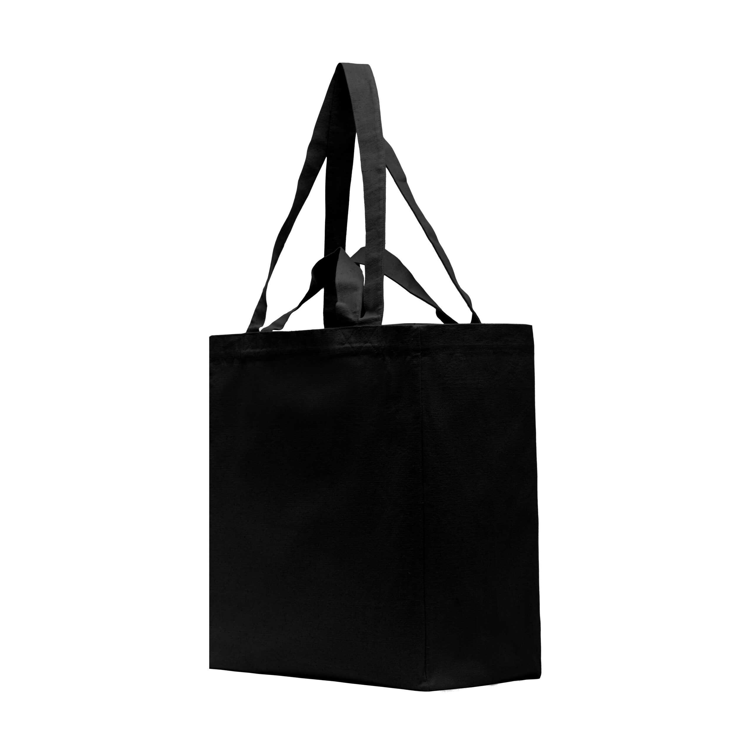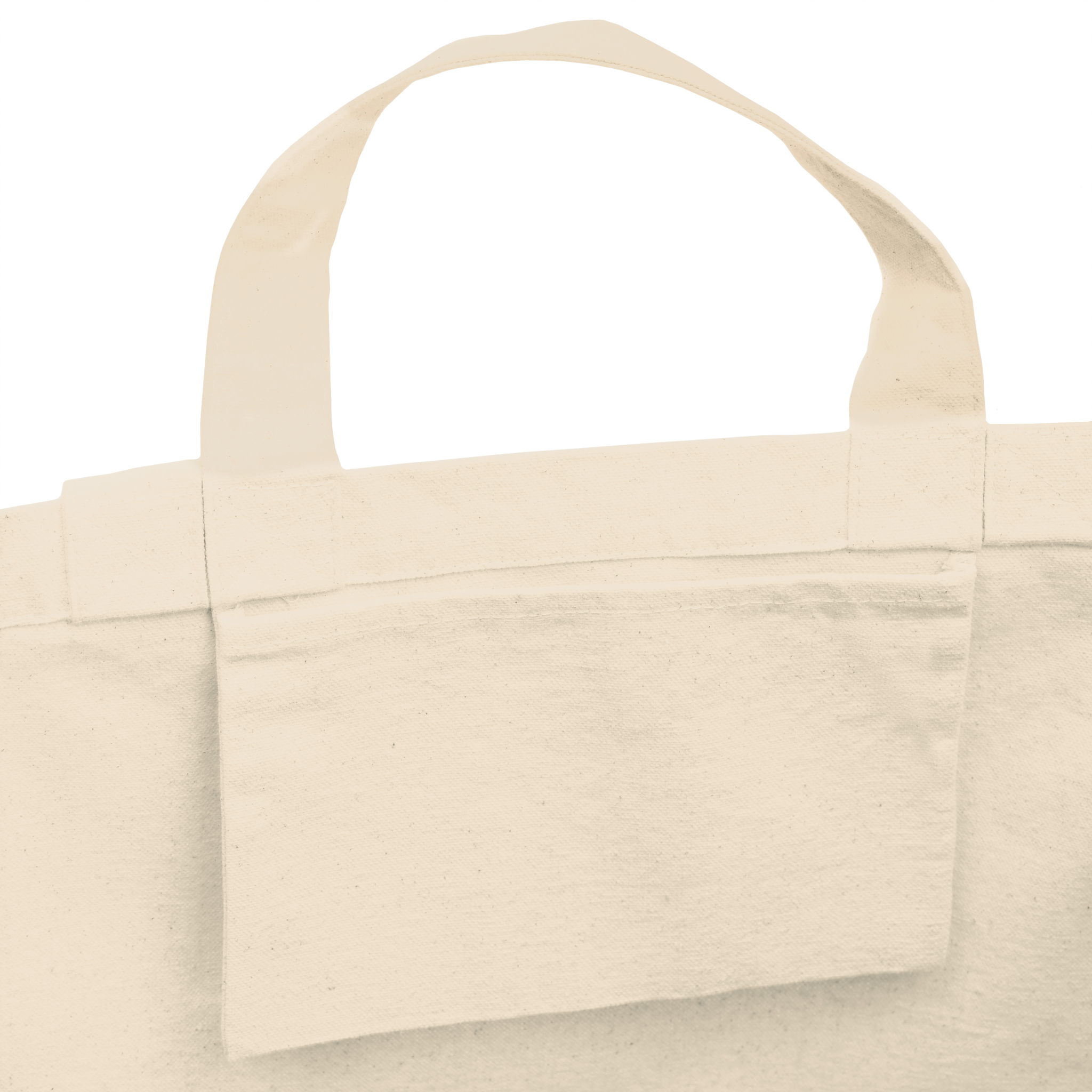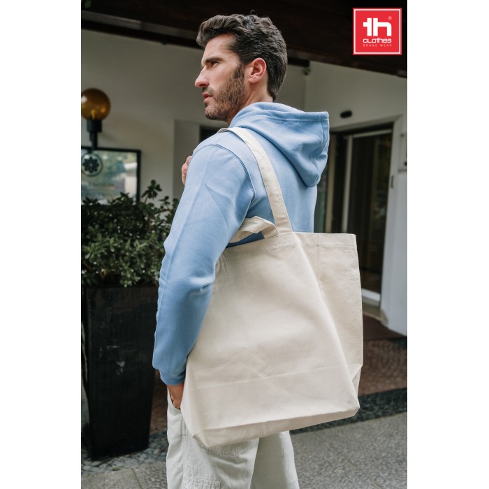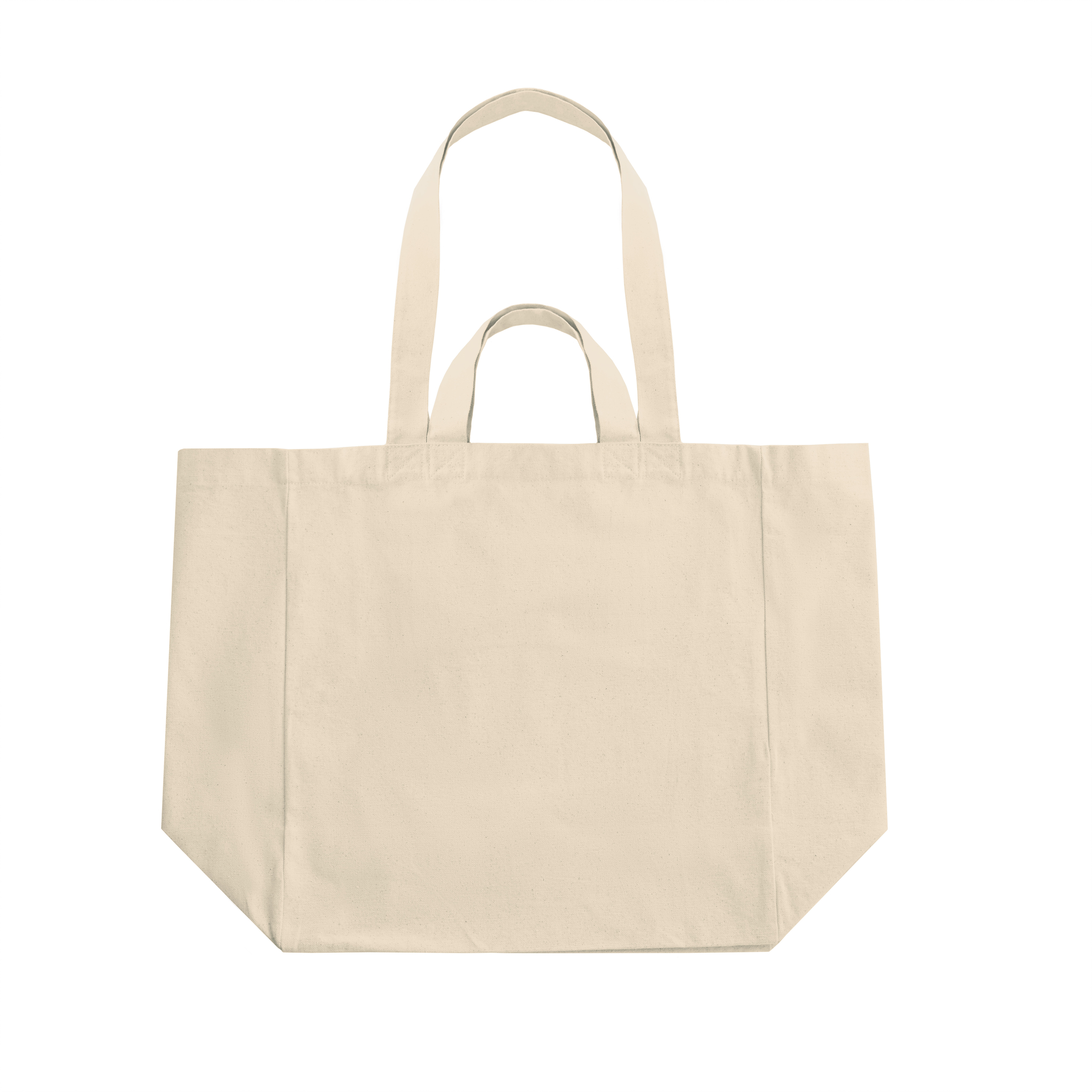 Borsa spesa 280 g/m²· Tela, 100% cotone· Spalline lunghe e spalline corte in tinta con l’articolo· Cuciture rinforzata· 1 tasca interna· Soffietto su base e fianchi· Capacità: 25 litri