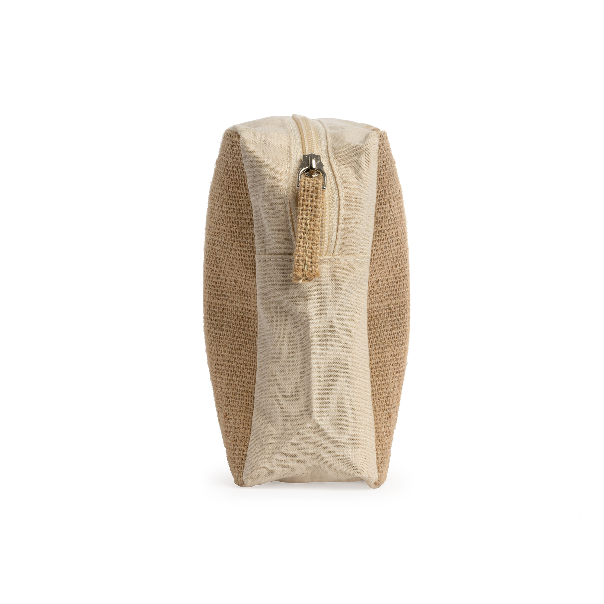 Beauty case in cotone e juta laminata. Pratico per riporre le tue cose. Zip con tiretto in juta abbinato.