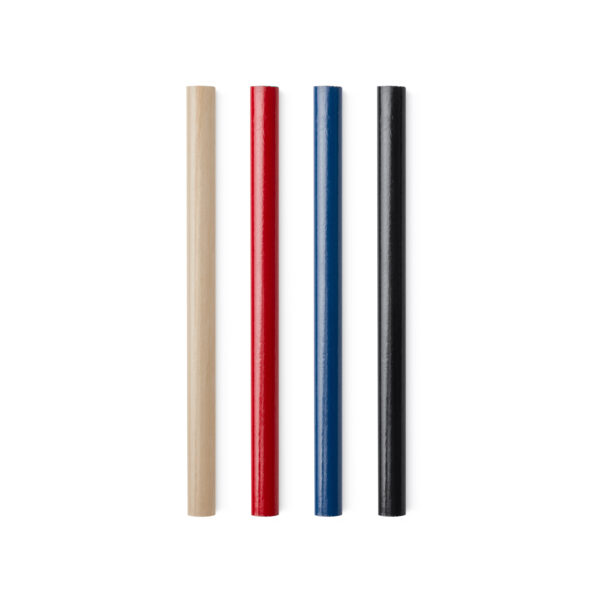 Lápiz de carpintero en forma ovalada para un fácil marcaje. Punta sin afilar y mina negra. Disponibilidad en varios colores.
