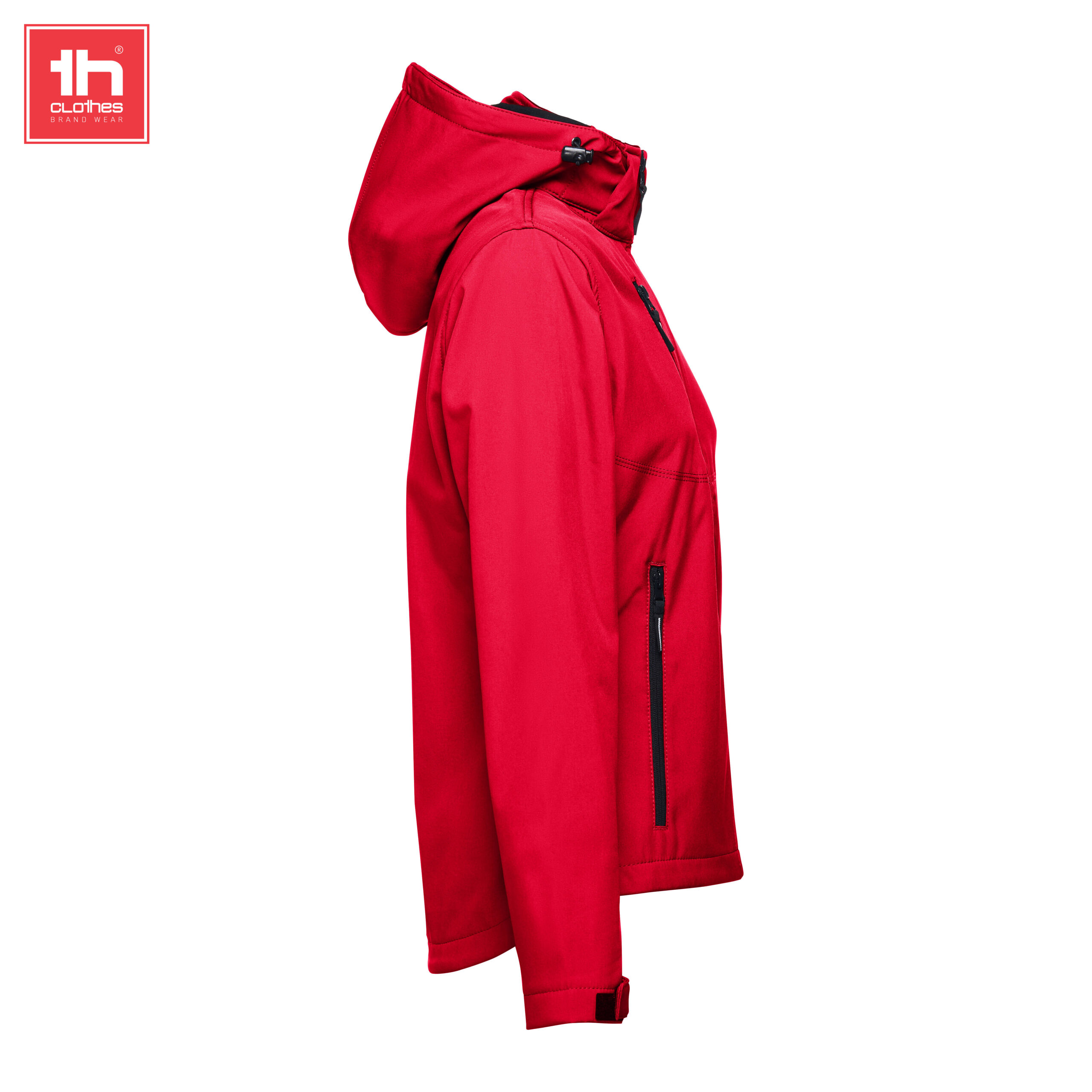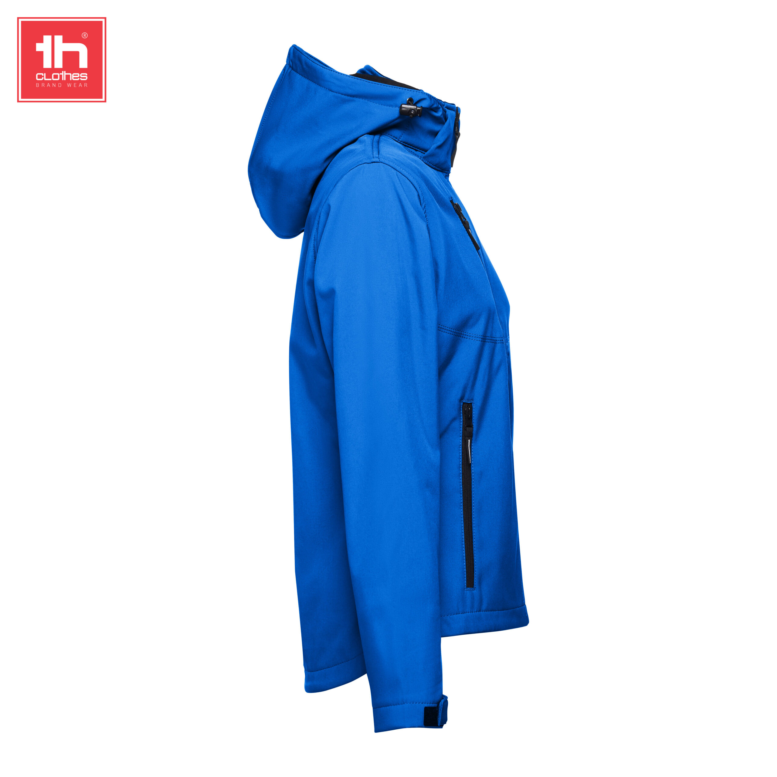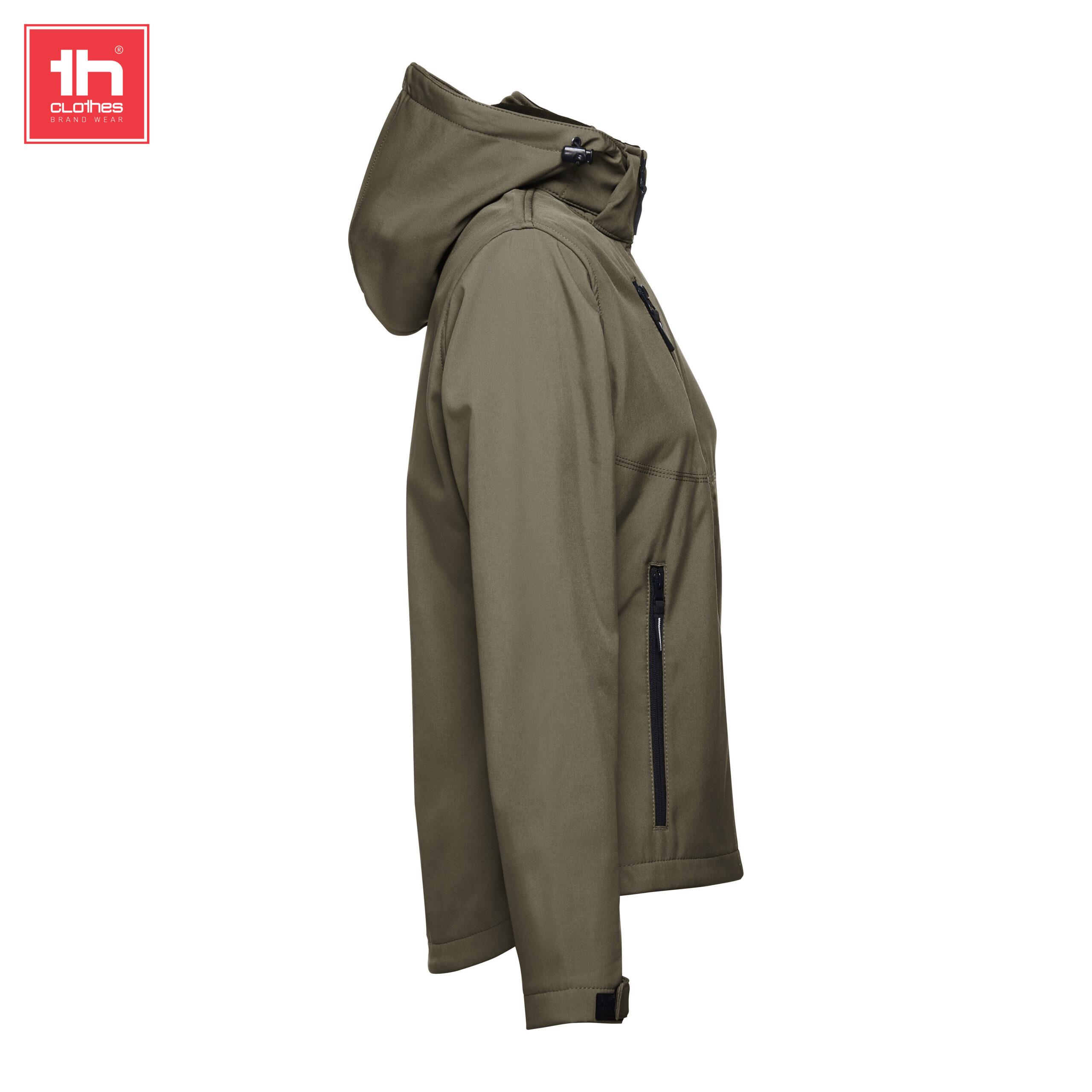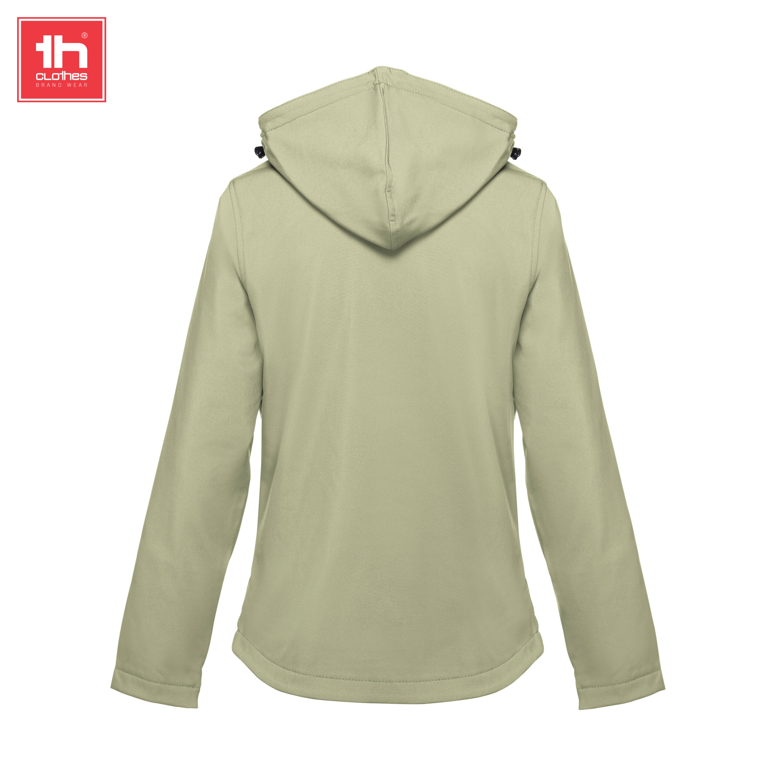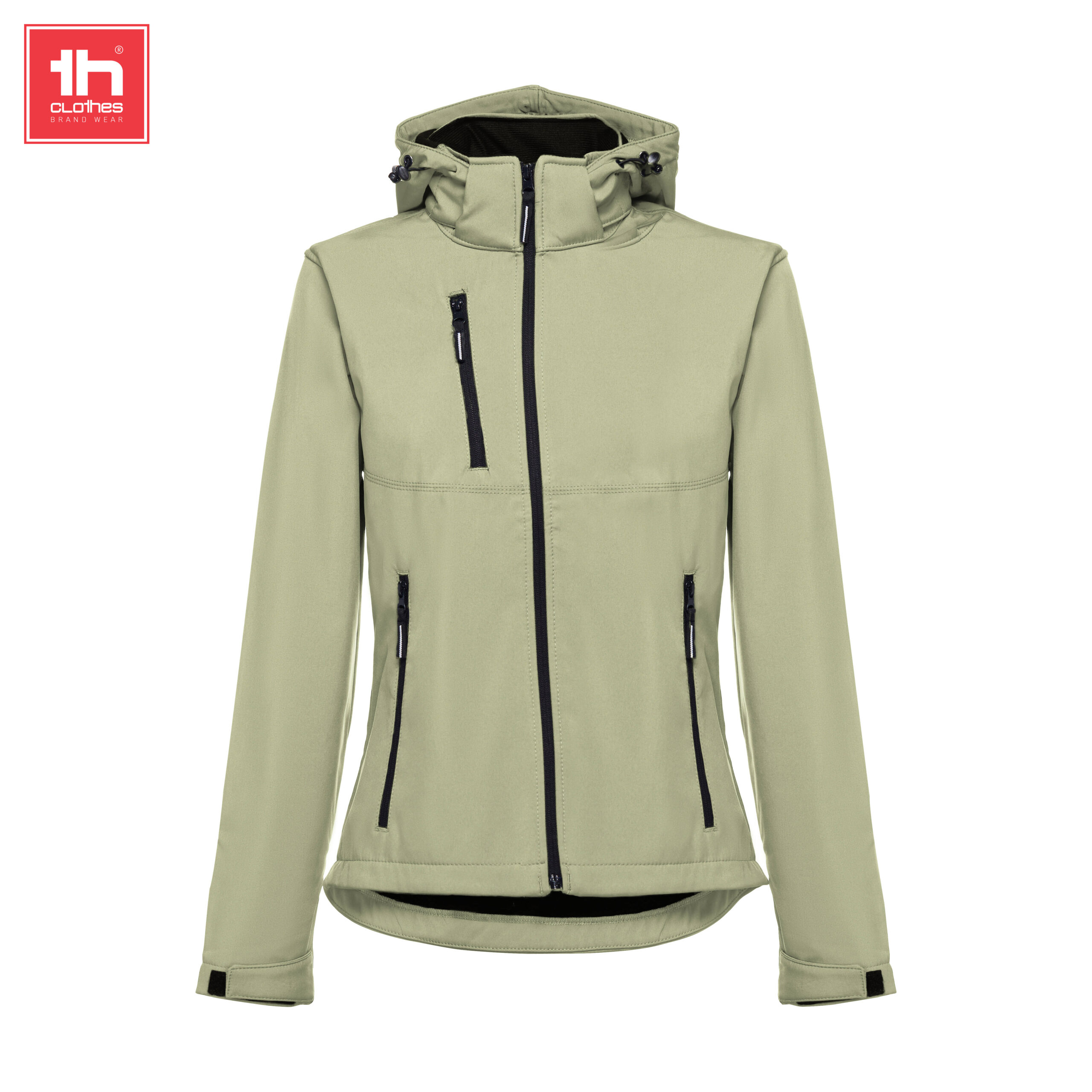 Softshell da donna con cappuccio rimovibile 280 g/m² · 96% poliestere, 4% elastan a due strati · Articolo idrorepellente· Foderato con rete in pile · 2 tasche frontali con cerniere · Tasca diagonale sul petto con cerniera· Polsini regolabili con cinturino in velcro· Cappuccio rimovibile con cerniera e cinturino in velcro per adattarsi al colletto· Arrotondato nella parte bassa della schiena· Apertura con cerniera YKK®· Cappuccio regolabile con elastico e stopper
